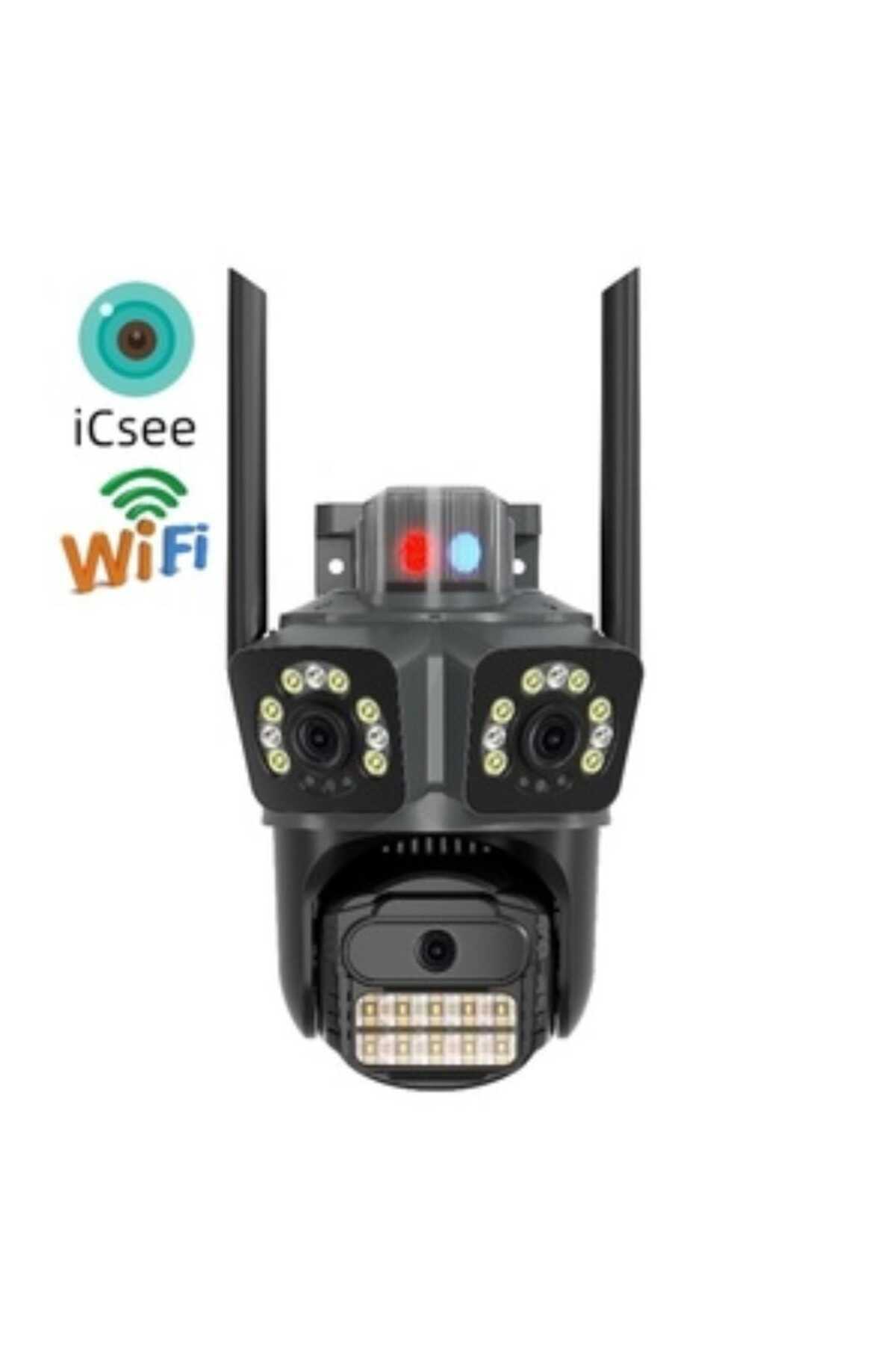 ALKESE 6MP 3 KAMERALI PTZ WIFI KAMERA 4K DIŞ CEPHE ALARMLI KABLOSUZ GÜVENLİK KAMERASI
