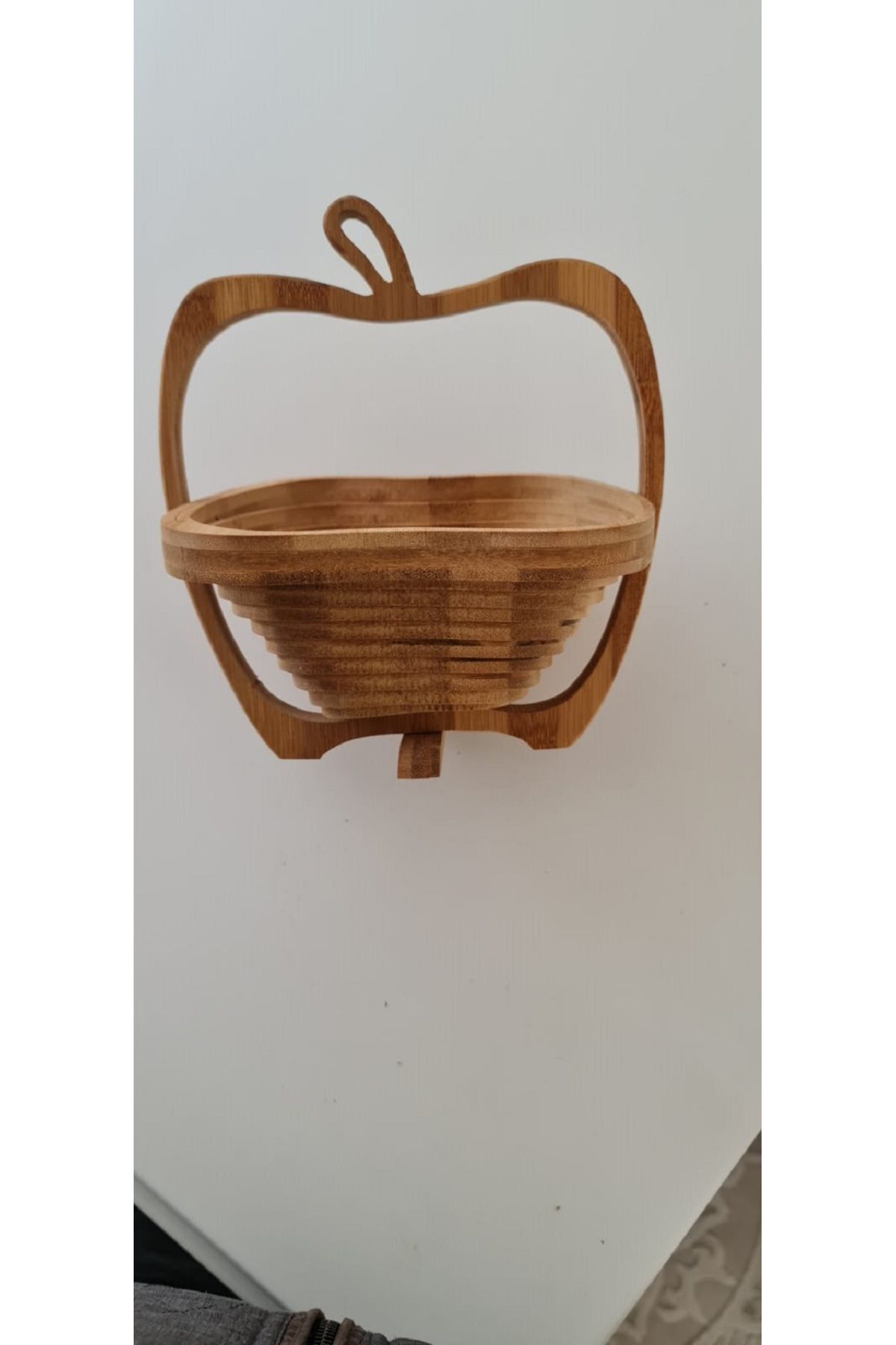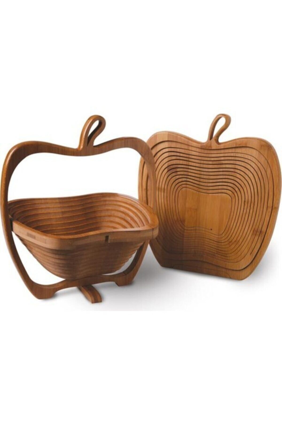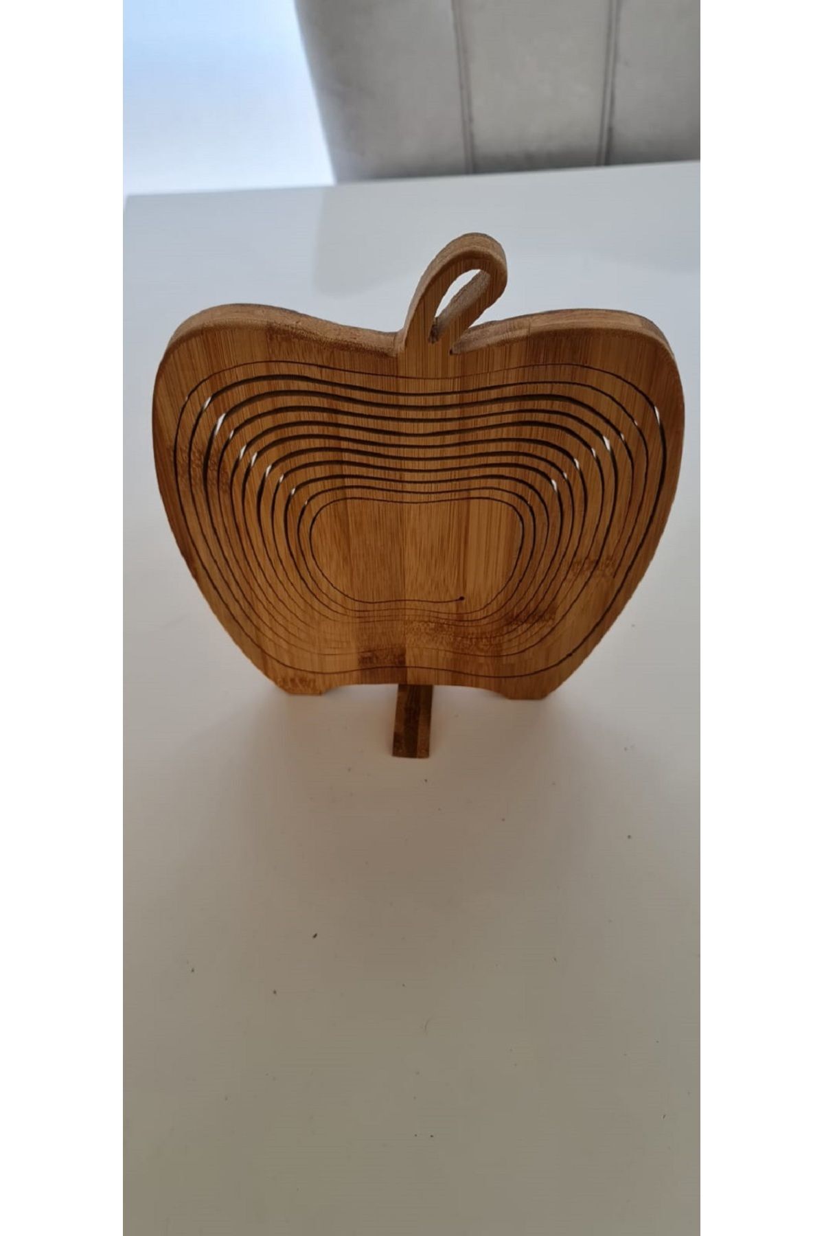 Katlanabilir Ahşap Şekerlik Ekmek Meyve Sepeti Elma / Folding Fruit Bowl Apple Basket In Bamboo