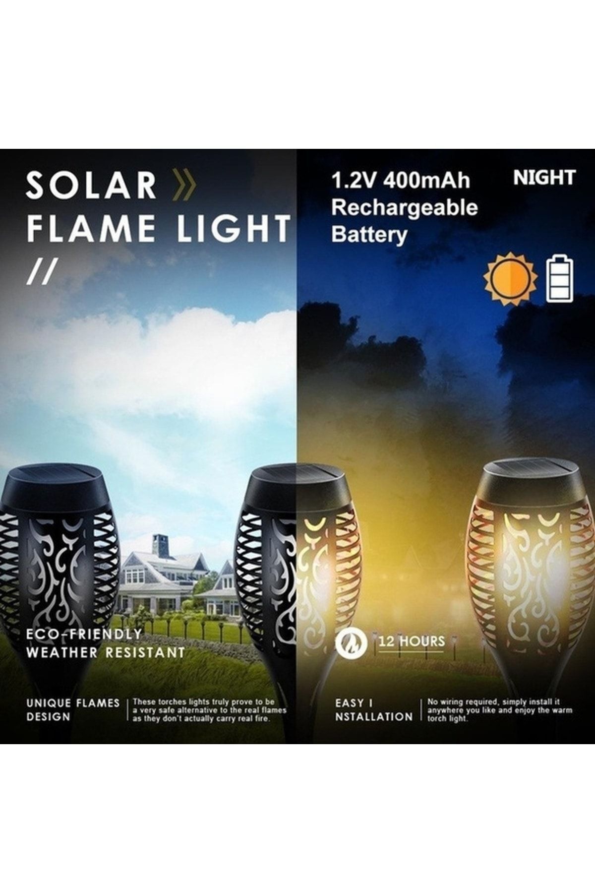 Ürün Özellikleri Tipi: 12/96LED güneş enerjili alev animasyonlu dekoratif çim patika yol bahçe ve avlu ışığı: Özellik: 1; Ürünümüz dans eden hareketli alev animasonlu ve çok şık sağlam bir tasarıma sahiptir; 8 adet LED den oluşur, her Led ışıklar sıralı şekilde yanarak bir alev efekti oluşturmaktadır; Alev ışığı taklidi son derece gerçekçi ve doğal izlenim vermektedir; 2; Ürünü açık konuma getirdiğinizde gün ışığı aldığında otomatik olarak şarj edilmekte güneş kaybolup hava karardığında da otomatik olarak devreye girerek ışık vermeye başlamaktadır; Dilerseniz yanmasını istemediğinizde içerisinde bulunan düğmeyi kapalı konumuna getirerek çalışmaması sağlanabilmektedir; 3; kurulumu çok kolaydır; Sadece kutudan çıkan kazıkları birbirine akleyerek yumuşak bir zemine batırarak sabitlemek ve açık konuma getirmek yeterli olacaktır; Ürünümüz yürüyüş yolları, havuz, bahçe,, veranda, çit, güverte, veya açık hava etkinlikleri gibi parti, kamp, düğün, gibi eğlence mekanlarında egzotik görüntüsü sayesinde ortamı hareketlendirmektedir; 4; Ürünümüz IP65 sertifikasına sahip su geçirmez ve dayanıklı, yıl boyunca her türlü hava şartlarına dayanabilmektedir; 5; Gün boyunca kendini güneşten şarj eder ve karanlıkta otomatik devreye girer; Çevre dostu ve enerji tasarrufludur; Malzeme: Türü: 12/96 LED güneş enerjili bahçe aydınlatma armatürü; Malzeme: ABS + PS plastik Su geçirmez seviye: IP65 Pil kapasitesi: 1; 2V/400/1000mAh Li; ion pil (dahil) Güneş panelleri: Monocrystalline silikon 5; 5V / 1; 2W Lamba yuvası: SMD2835; 12/96 adet Şarj süresi: 6; 8 saat (şarj süresi hava koşullarından etkilenecektir) Çalışma süresi: 4; 6 saat Renk: alev sarı Sıcak ipuçları: !!! Lütfen güneş enerjili bir ürün olarak, çalışma süresinin hava şartlarına duyarlı olduğunu unutmayın; İlk kez kullanım için, ürünümüzü 2; 3 gün boyunca güneşli güne maruz bıraktığınızdan emin olun;