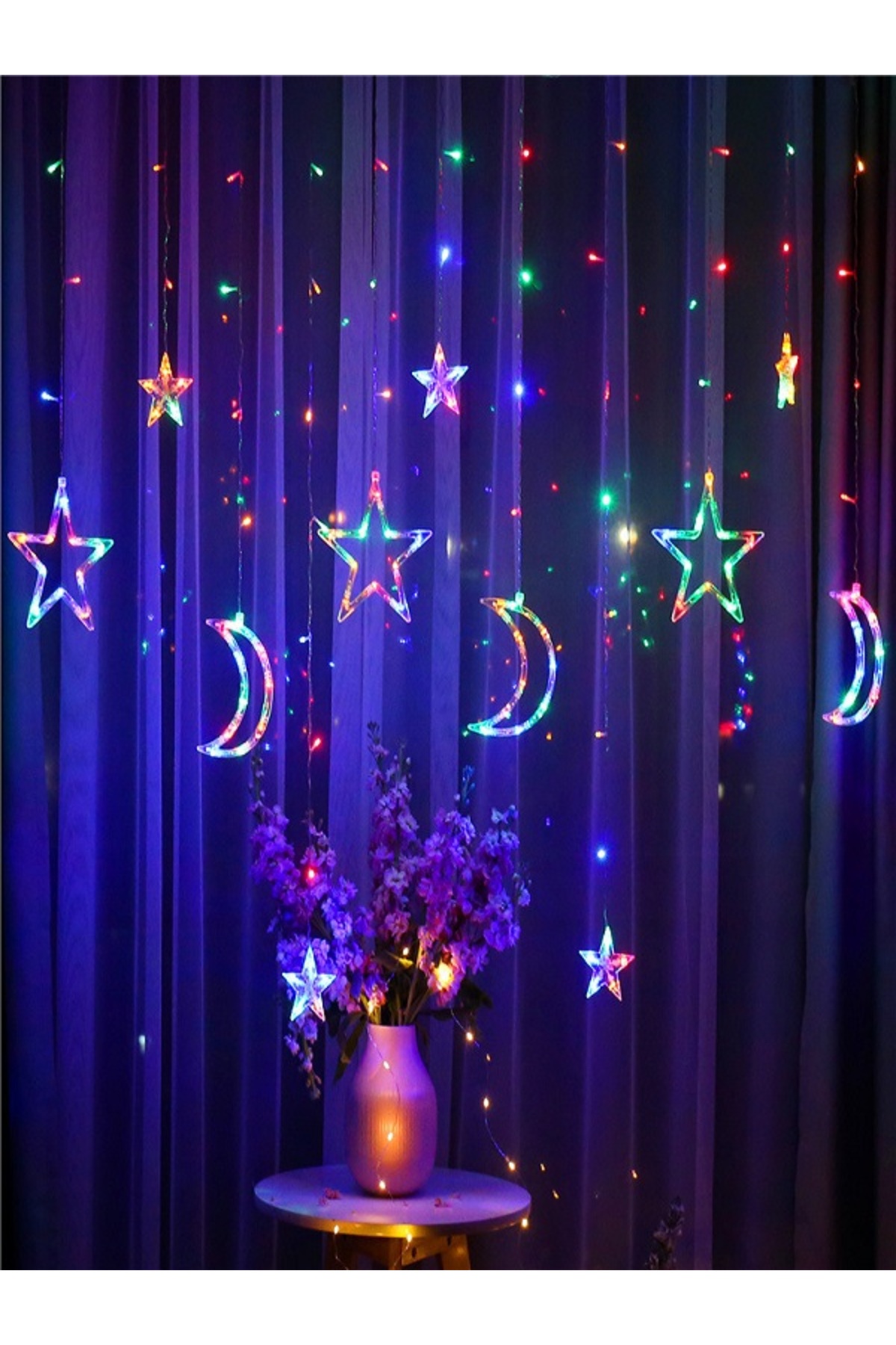 Yılbaşı Dekoratif Süsleme Işığı Ay Yıldızlı Peri Led Perde Süsleme Işığı 3 Mt Doğum Günü Işık
