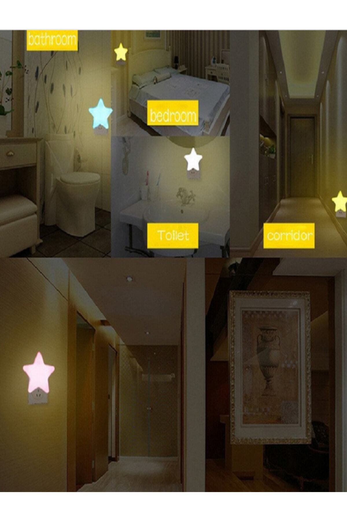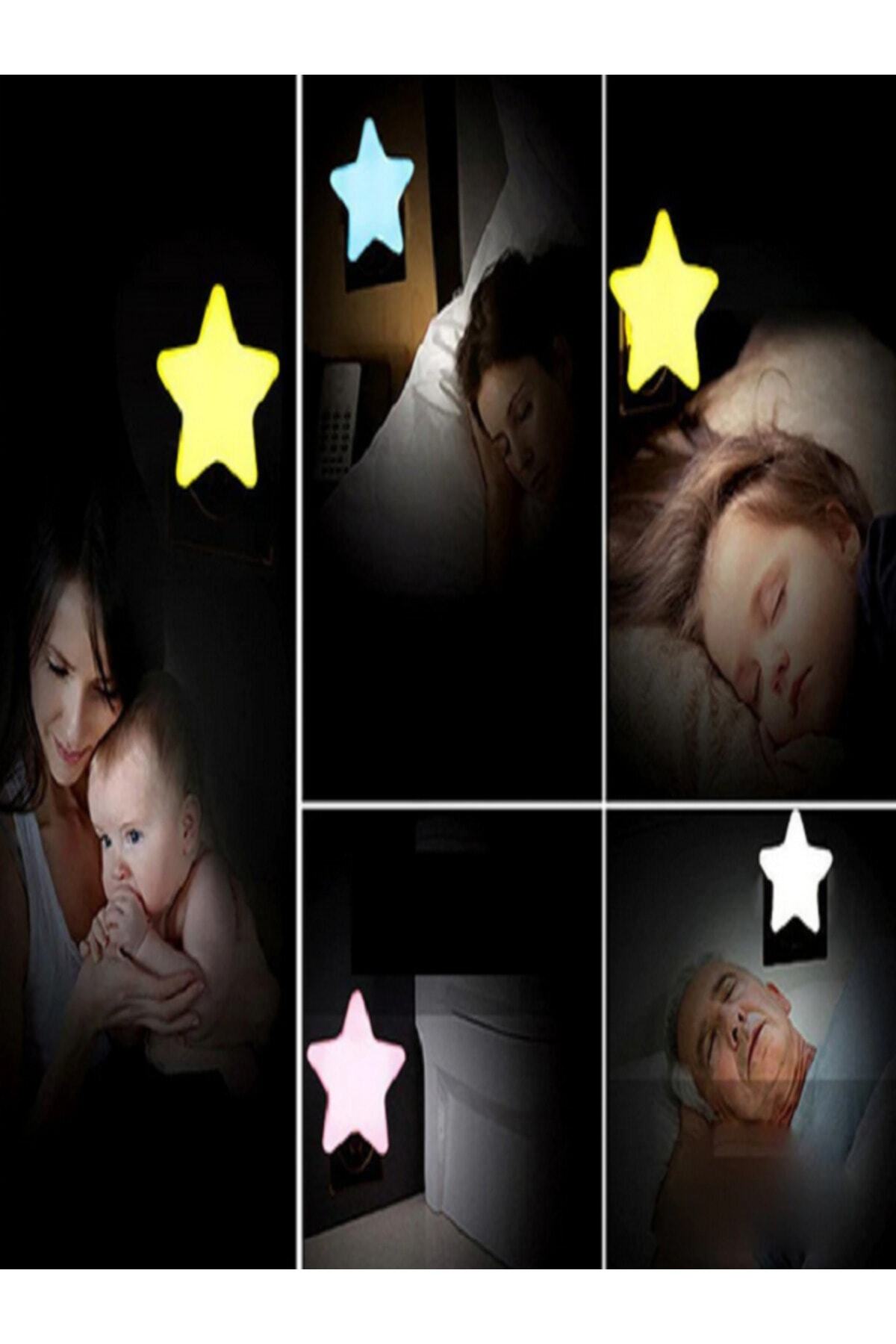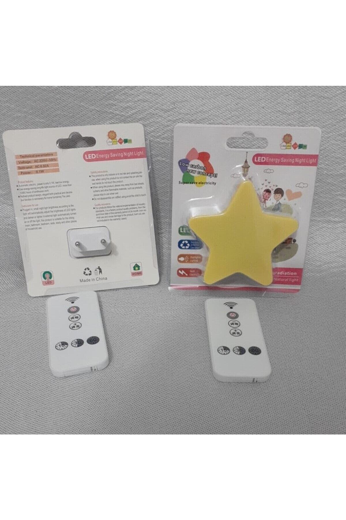 Yılbaşı Işıkları Kumandalı Sevimli Yıldız Sarı Led Gece Lambası Aydınlatma Elektrikli Fişli